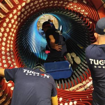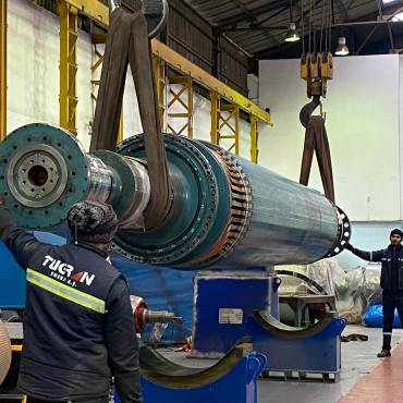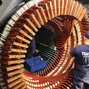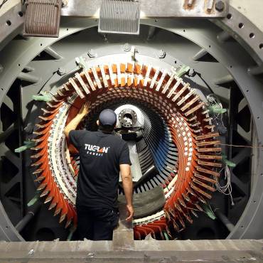 We carried out the replacement of stator windings, disassembly of the rotor retaining ring, renewal of rotor under-cap winding insulation, and high-speed rotor balancing operations.